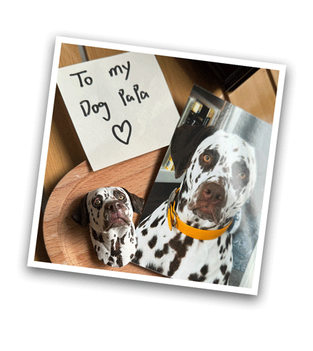We meticulously etch your personalized illustration onto your very own personalized pet face figurine!
